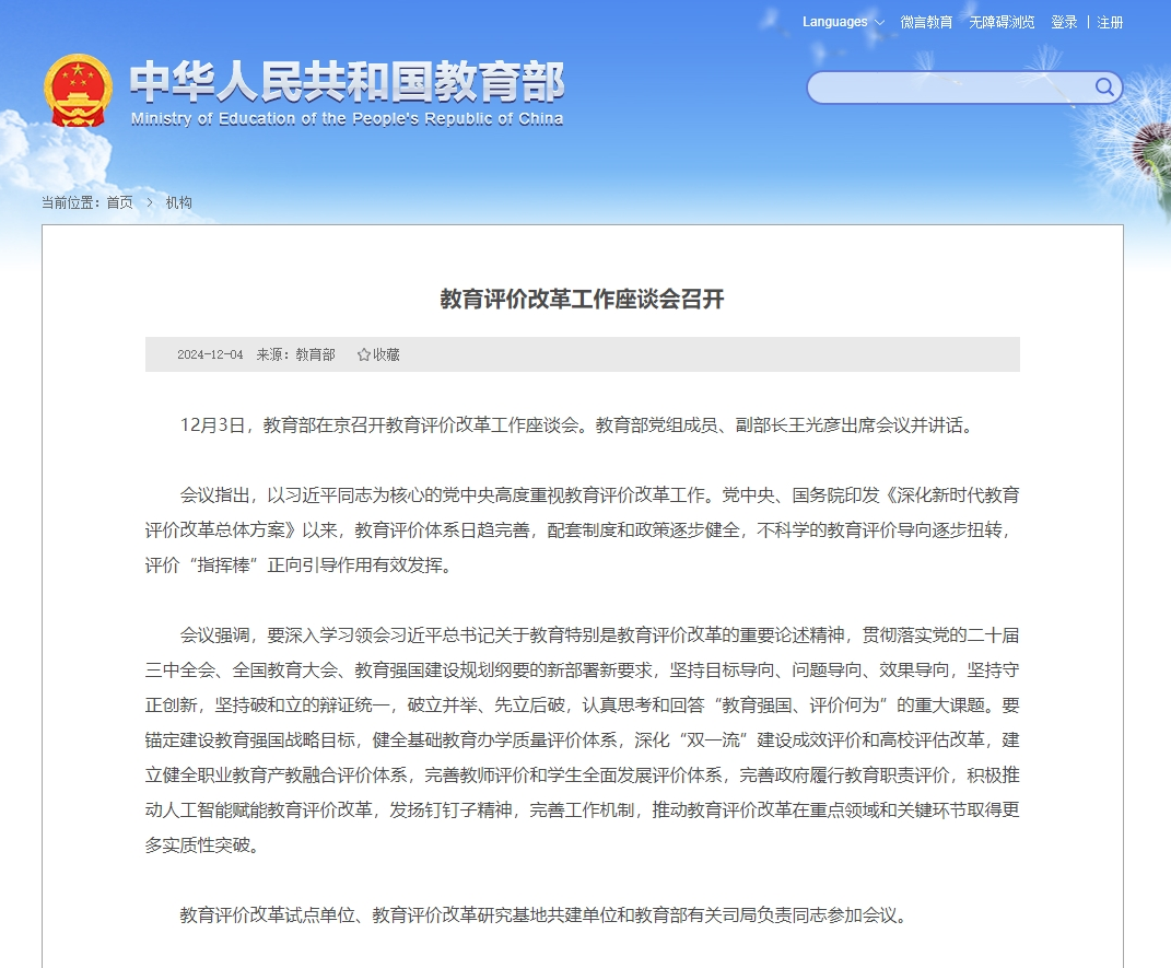 2024年底,教育部召开教育评价改革工作座谈会,强调构建科学、全面的教育评价体系。