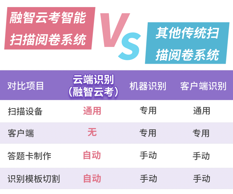 融智云考智能扫描阅卷系统,对比传统扫描阅卷系统: