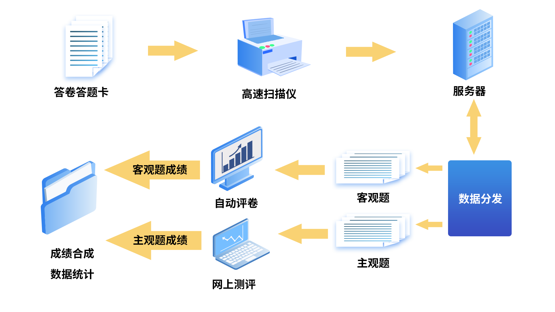 纸考在阅卷方面也有诸多不便,人工阅卷需要耗费大量的时间。融智云考可进行答题卡线上扫描阅卷,客观题自动阅卷,主观题教师在线进行批阅,极大地缩短阅卷时间,减轻教师的压力。
