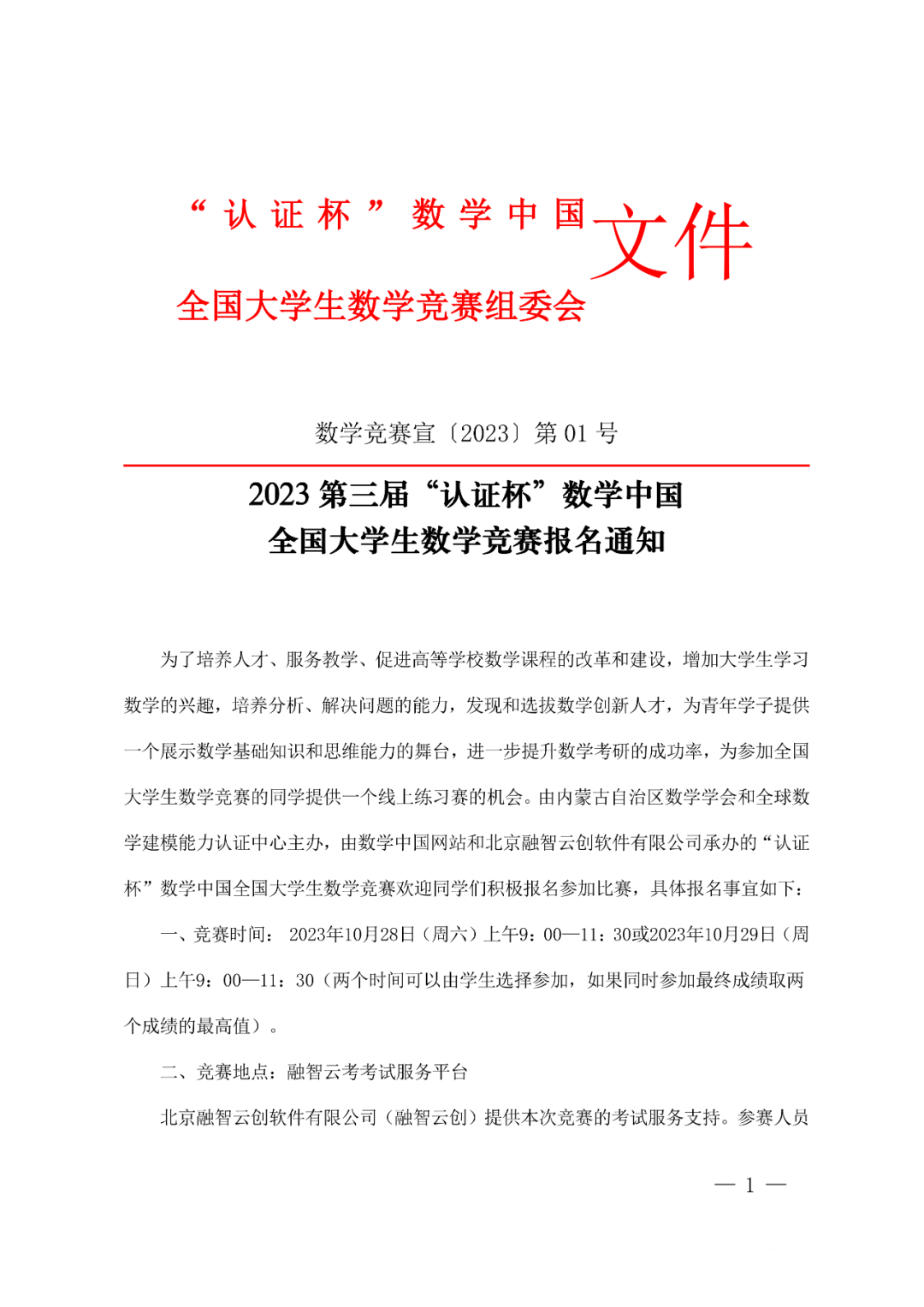 2023第三届“认证杯”数学中国全国大学生数学竞赛参赛通知红头文件