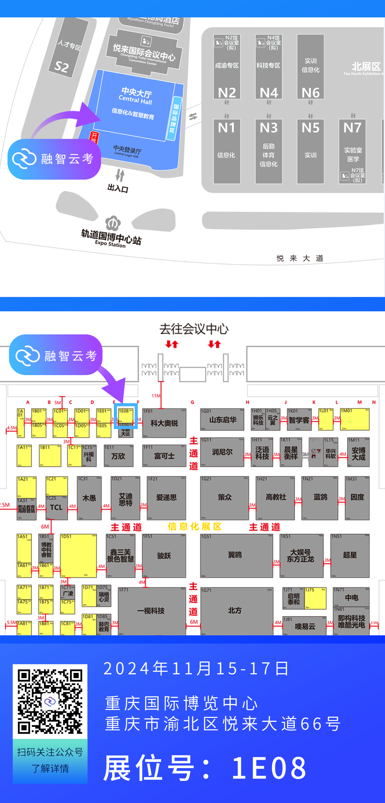 融智云考将亮相本次展会中央大厅-1E08展位。诚邀您莅临现场,共谱产教深度融合新篇章!